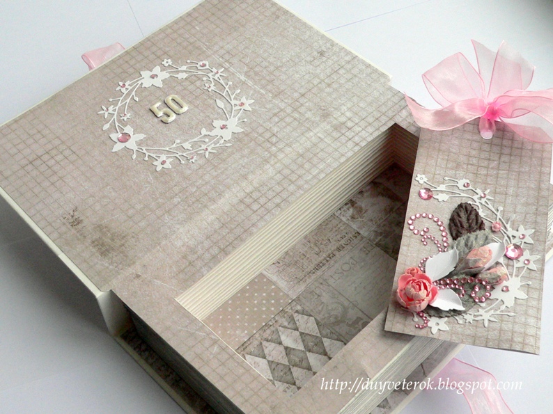 - вырубка (цветочные венки, листочки, бордюр, прямоугольник, цифры, тег), ажурную вырубку клеила на матовый акриловый лак, получилось крепко и аккуратно (почему я так раньше не делала?)